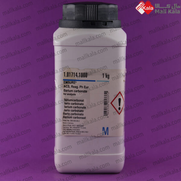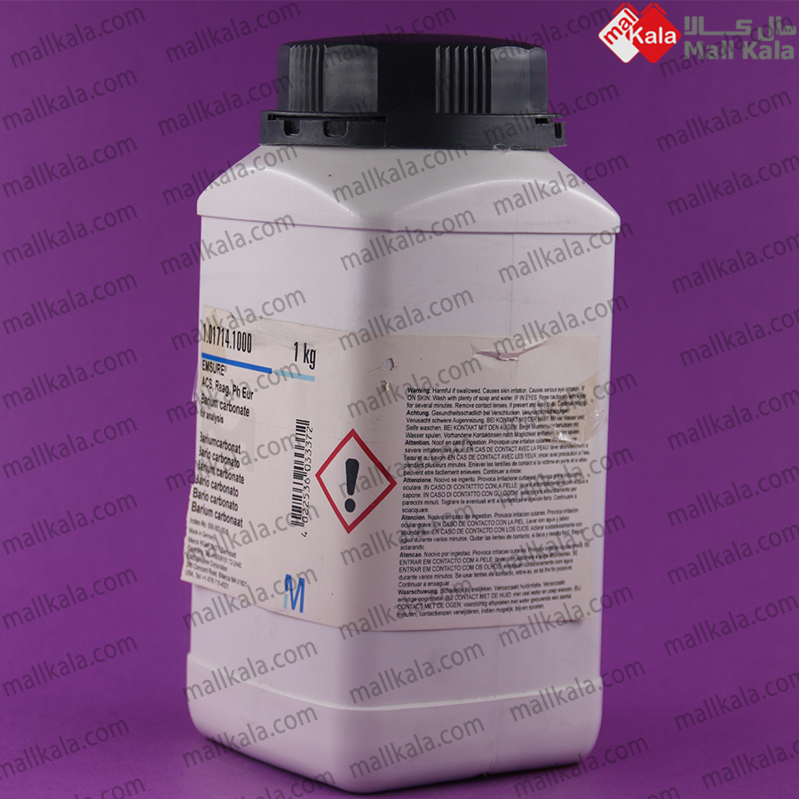 باریم کربنات (Barium Carbonate) با فرمول شیمیایی BaCO₃ یک ترکیب معدنی سفیدرنگ و پودری است. که در صنایع مختلف شیمیایی و متالورژی کاربرد فراوان دارد. این ترکیب از واکنش باریم سولفید با دیاکسید کربن یا کربنات سدیم تولید شده و به دلیل ویژگیهای شیمیایی خاص خود در صنایع شیشه، سرامیک و تولید مواد شیمیایی استفاده میشود. محصول حاضر از برند معتبر Merck (مرک آلمان)بوده و در بستهبندی ۱ کیلوگرمی از طریق سایت مال کالا عرضه میشود.
