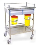 ترالی پانسمان: این ترالی حاوی تجهیزات استریلی است که برای درمان سرپایی بیماران مورد استفاده قرار می گیرد. تجهیزاتی مانند کپسول اکسیژن، سرنگ، لوله آزمایش و … از مواردی هستند که در این ترولی ها نگهداری می شوند و به محض استفاده جایگزین می شوند.