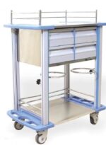 ترالی پانسمان: این ترالی حاوی تجهیزات استریلی است که برای درمان سرپایی بیماران مورد استفاده قرار می گیرد. تجهیزاتی مانند کپسول اکسیژن، سرنگ، لوله آزمایش و … از مواردی هستند که در این ترولی ها نگهداری می شوند و به محض استفاده جایگزین می شوند.