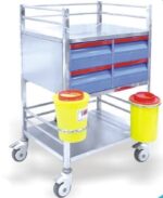 ترالی پانسمان: این ترالی حاوی تجهیزات استریلی است که برای درمان سرپایی بیماران مورد استفاده قرار می گیرد. تجهیزاتی مانند کپسول اکسیژن، سرنگ، لوله آزمایش و … از مواردی هستند که در این ترولی ها نگهداری می شوند و به محض استفاده جایگزین می شوند.