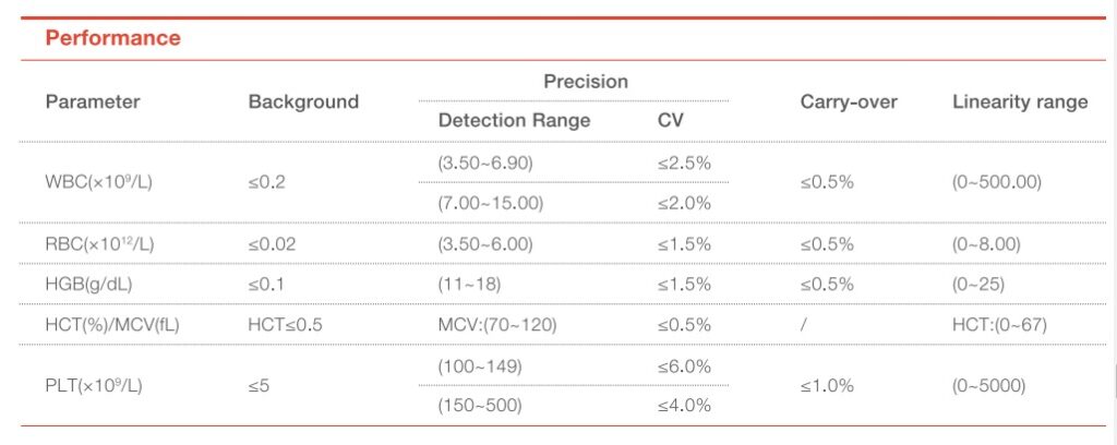 - گسترش دامنه خطی WBC (گلبول سفید) و PLT (پلاکت)، نتایج دقیق تری را برای نتایج WBC و PLT، به خصوص برای مقادیر کم به ارمغان می آورد.